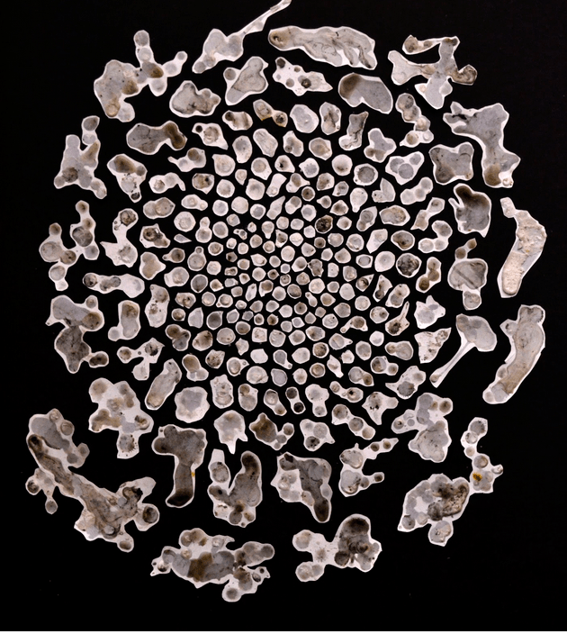 Adrienne Piscopo, Stain, 2016. Wax, paper, black mat board and adhesive. 80 cms x 80 cms.